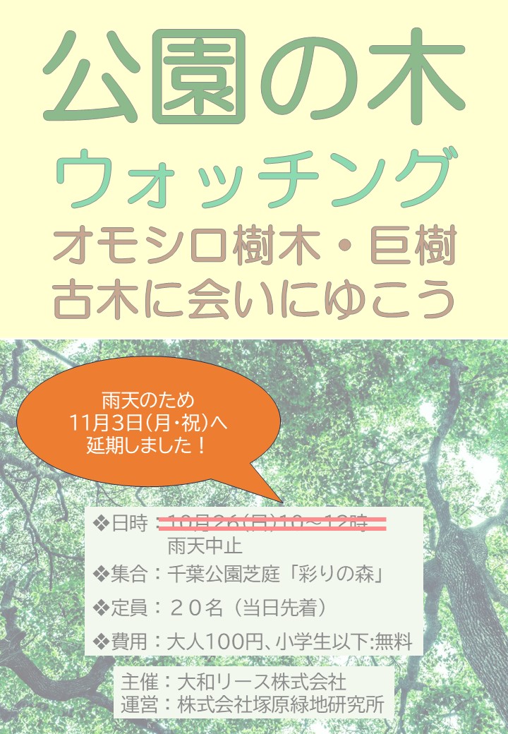 【10月26日】公園の木ウォッチング延期のお知らせ