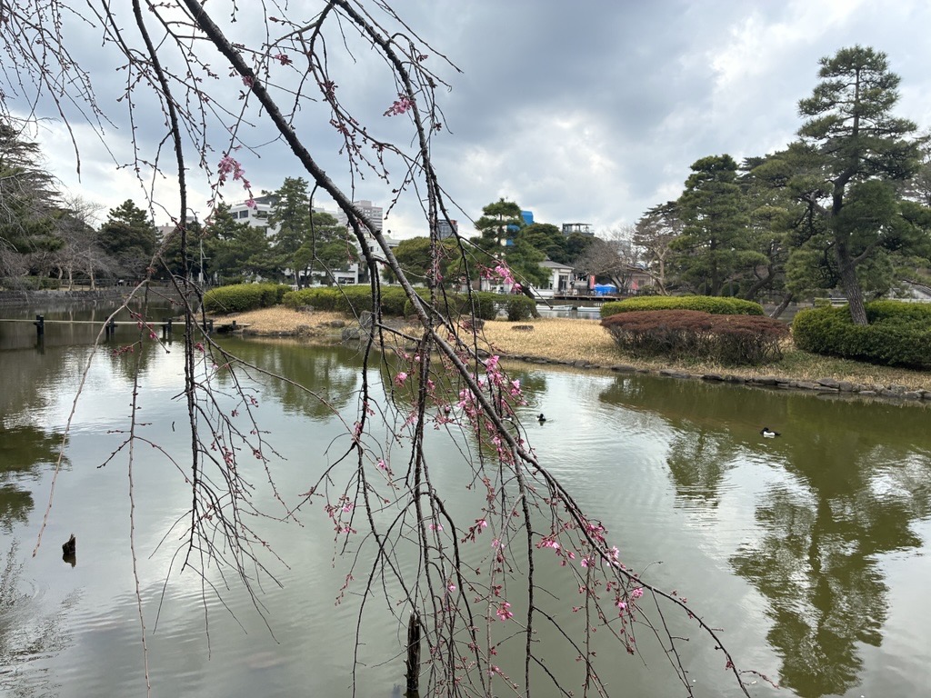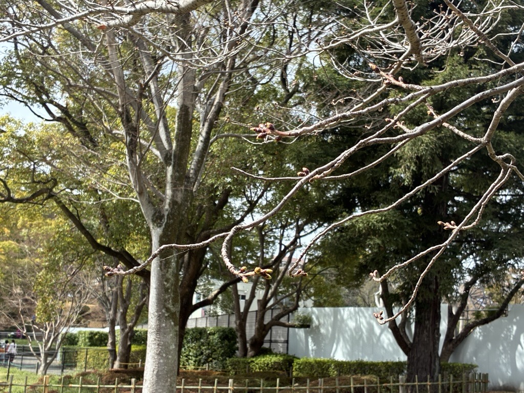蓮華亭付近の桜は開花までもう少し時間がかかりそうですね。シダレザクラはお花が増えてきました。