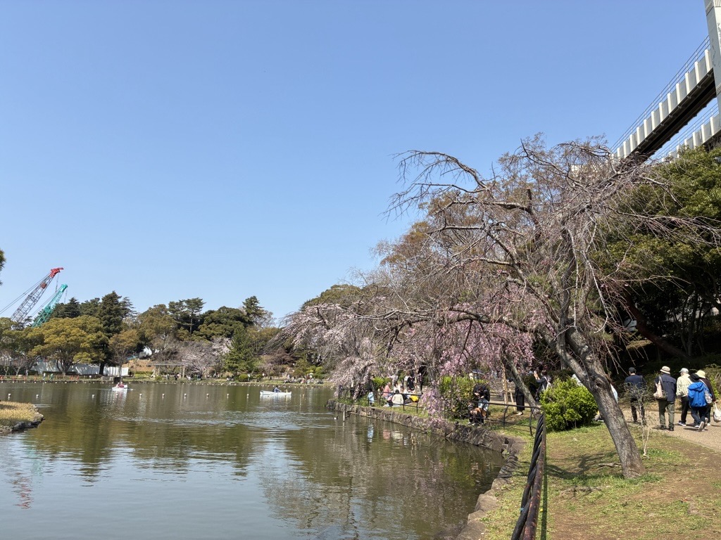 お花見広場や千葉JPFドーム付近の桜は6分咲きぐらいでしょうか。本日は晴天に恵まれ、池周辺ではソメイヨシノやシダレザクラが見ごろを迎えています。お散歩がてら、ぜひご覧ください。
