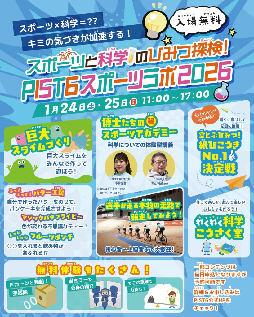 1月24日(土)・25日(日)は『スポーツと科学のひみつ探検!PIST6スポーツラボ2026』を実施いたします。スポー …