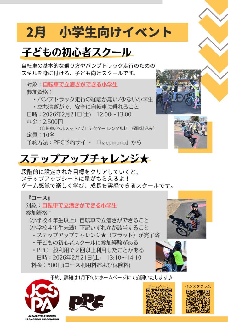 日にち: 2月21日㈯【子どもの初心者スクール】時 間:12:00~13:00対 象:自転車で立漕ぎができる小学生【ス …