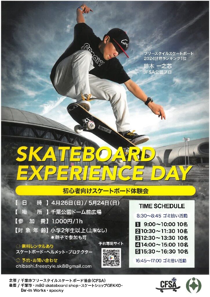 初心者向けスケートボード体験会を実施します!
